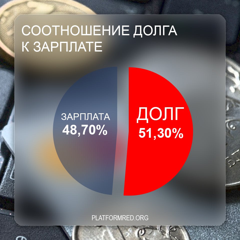 Тем временем продолжается грабёж народа. В Тыве долг рабочего достиг 151% от зарплаты, в Калмыкии — 123%. Каждый кредит — это цепь, которой капиталисты приковывают нас к нищете.